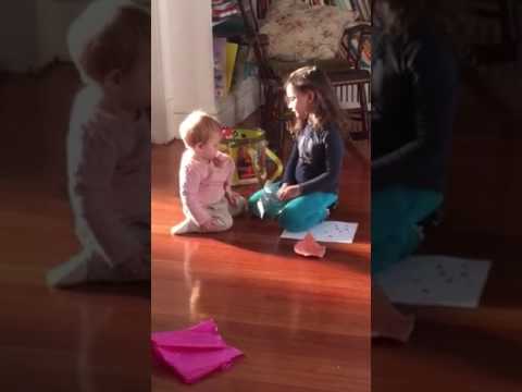 Lanie is not fond of her shirt, or perhaps she is just working on a new skill.