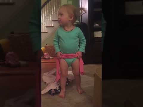 The video below is Lanie "putting her pajamas on." She likes them a lot because they have a cat on them, and she likes to say, "cat."